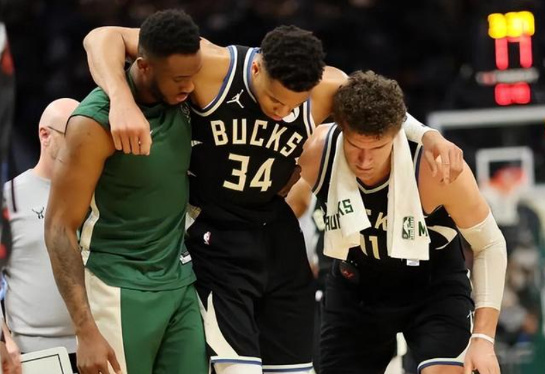 而更加雪上加霜的是,在对阵残阵掘金一役中,约基奇、穆雷等掘金主力缺阵,几乎派上了纯替补阵容,但雄鹿仍然输掉了比赛,堪称本赛季最耻辱的一战。最致命的是,在这场比赛中,第四节还剩30多秒时,球队当家球星字母哥在毫无对抗的情况下突然痛苦倒地,手捂小腿无法站起,随后只能被搀扶着一瘸一拐地走下场。