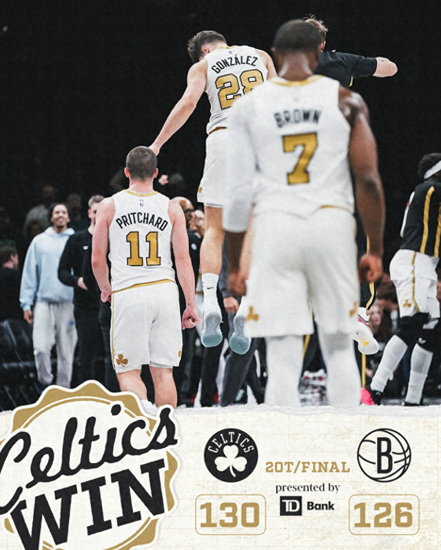 布朗:能拿下这场胜利还算不错,我们奋力拼搏了。遗憾的是我们不得不鏖战两个加时赛才击败篮网。你们也知道除了我之外,我们队内没有太多进攻出色的球员。